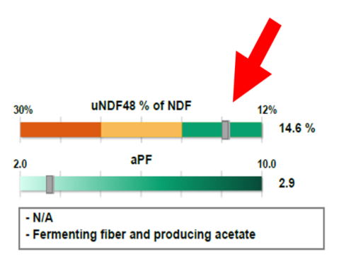 This represents the percentage of undigested NDF after 48 hours within the rumen, measured via gravimetric analysis and modelled by artificial intelligence.