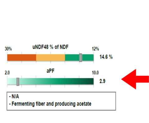 Higher aPF values indicate fermentation patterns yielding relatively greater proportions of propionate and butyrate and lesser proportions of acetate, carbon dioxide, and methane. This will yield a greater supply of ATP, which could support greater microbial growth. However, acetate is a key substrate in the formation of milk fat, requiring a balanced approach to dietary manipulation of fermentation end products.