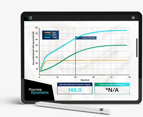 When you run Dynametrix at pen level, first look at the gas production curves on each of the scans. Do the fast, slow and total production curves look similar between scans? If not, the cows are not being offered a uniform diet. Sampling is best done at the start, middle and end of distribution. Either feeding or post-feeding samples can be taken as either can be used to demonstrate an underlying issue. Samples taken at feed can demonstrate delivery issues whereas (as soon as 30 min) post-delivery can be used to demonstrate feed sorting.